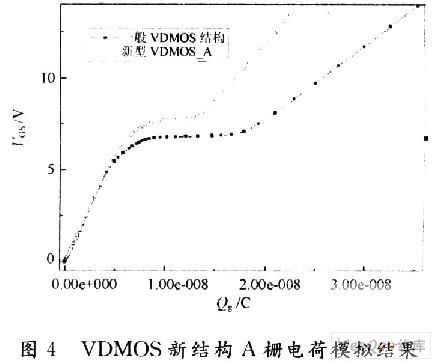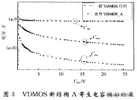 4 結(jié) 語 本文提出一種減小VDMOS寄生電容,提高其動態(tài)特性的新結(jié)構(gòu)。并用TCAD(ISE)軟件對其模擬。從模擬分析結(jié)果可看出,新型結(jié)構(gòu)A與傳統(tǒng)VDMOS相比,能有效減小反饋電容及柵電荷,提高VDMOS器件的開關(guān)速度,提高器件的動態(tài)性能。