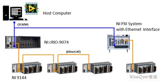 圖2.使用分布式I/O的NI實(shí)時(shí)系統(tǒng) NI 9144是工業(yè)級(jí)的機(jī)箱,設(shè)計(jì)擁有極高的堅(jiān)固程度、可靠性和-40到70°C的工作范圍。為了自定制測(cè)量和控制系統(tǒng),用戶可以在30余種模擬和數(shù)字C系列模塊間進(jìn)行選擇。而且,在添加實(shí)時(shí)擴(kuò)展I/O時(shí),軟件配置和LabVIEW編程也被設(shè)計(jì)成易于使用。