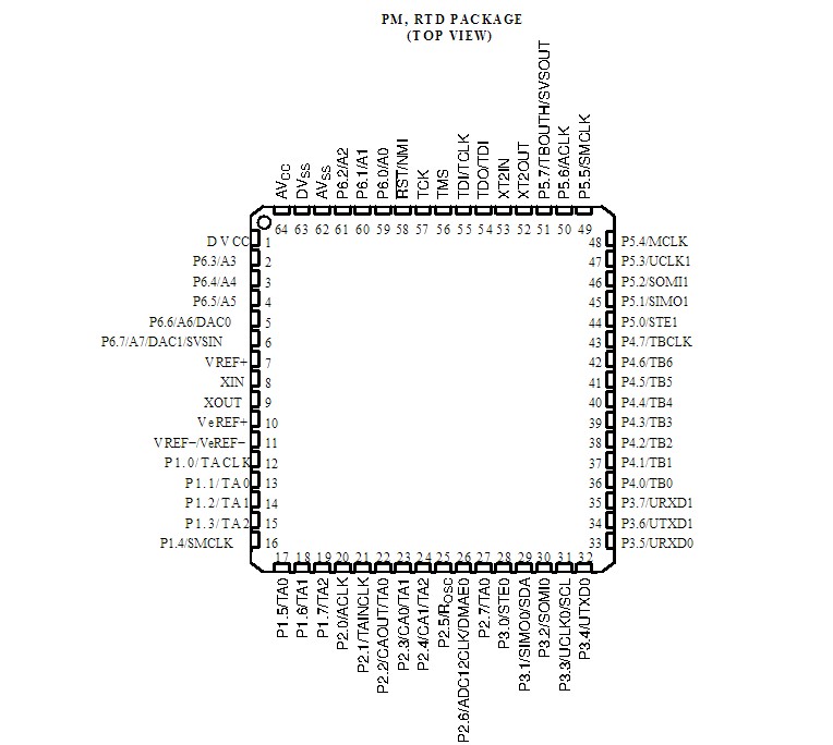 The MSP430F15x/16x/161x series are microcontroller configurations with two built-in 16-bit timers, a fast 12-bit A/D converter, dual 12-bit D/A converter, one or two universal serial synchronous/asynchronous communication interfaces (USART), I2C, DMA, and 48 I/O pins. In addition, the MSP430F161x series offers extended RAM addressing for memory-intensive applications and large C-stack requirements.