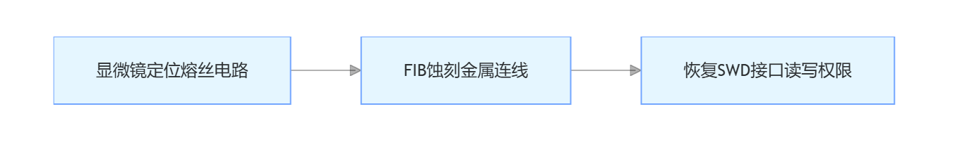 定位芯片內(nèi)部的讀保護(hù)熔絲控制邏輯(通常位于 0x40023C00 寄存器區(qū)域),使用聚焦離子束切斷使能信號: